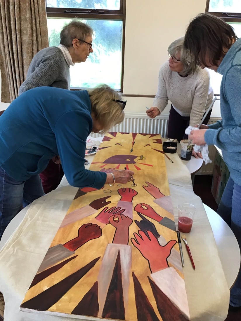 The Making Group started in 2015, to offer people a chance to respond creatively to the Lent Study theme by making a series of installations in church using art and craft techniques. We have made papier- maché pots in response to the theme ’Broken but Beautiful’, wall hangings incorporating the congregations’ responses to the National consultation ‘Living in Love and Faith’, and in Lent 2024 we explored the trial and suffering of Jesus, creating six panels depicting the violence he suffered.